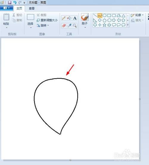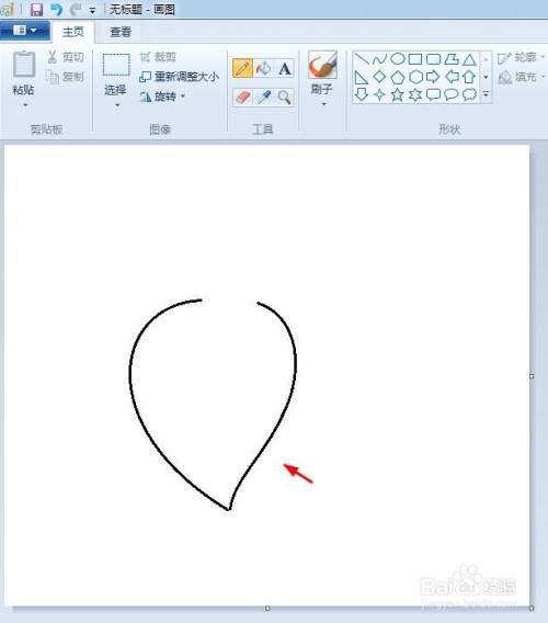 第一步:我们先按照下图所示的形状,画出一个弧形。