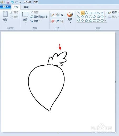 第三步:用弧线形将两侧的线条补充完整,这样一个萝卜的轮廓就出来了。