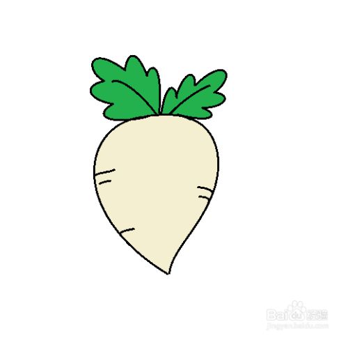 第七步:选择米白色和绿色的彩笔给萝卜涂上颜色就可以了。