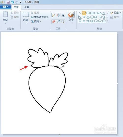 第五步:按照上面的方法,再画出一片萝卜叶子,并画出叶脉。