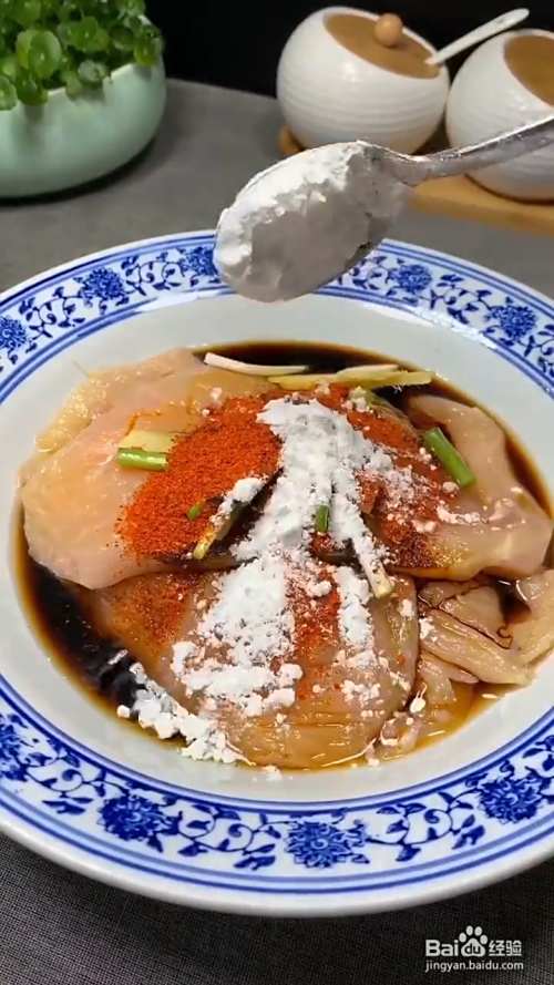 再加入孜然粉,辣椒粉,干淀粉,盐抓拌均匀腌制半小时。