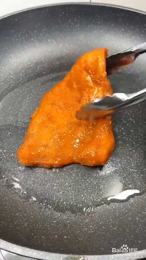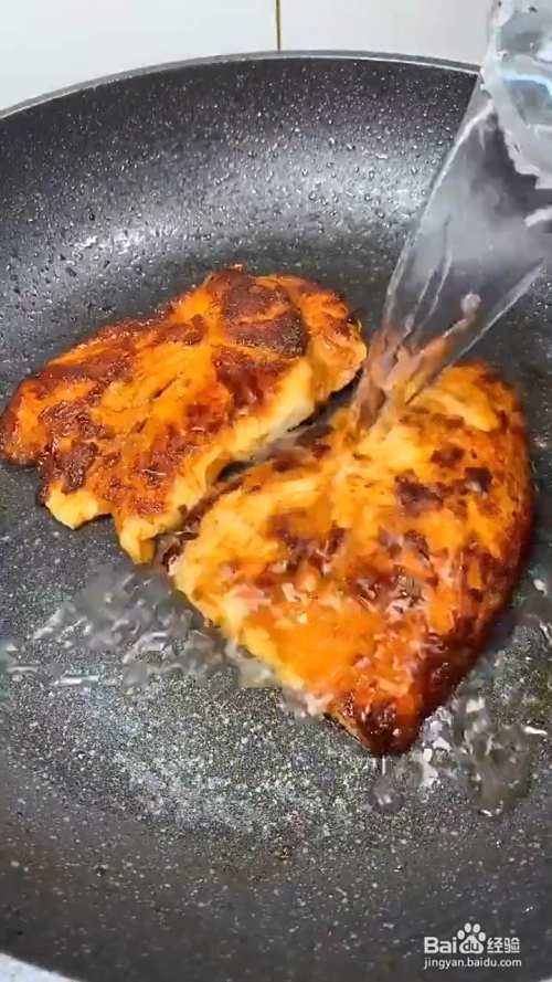 锅中油热下入锅中煎,中小火慢煎,煎至两面金黄;再加入适量清水,盖上盖子煮3分钟,最后大火收汁出锅切片,再撒上烧烤料即可。