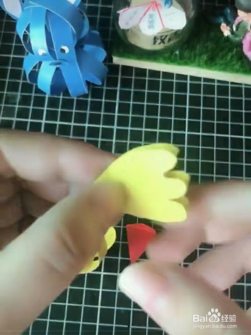 红色的卡纸剪出小鸟的大嘴巴,非常的红艳艳超级美。小鸟的嘴巴是一个类似于菱形的形状。