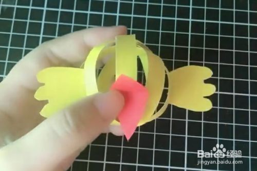 固定在小鸟的两边,如图所示,固定的时候可以采取一些比较巧妙的方法来进行粘贴或者是订书机。这部可以根据自己的要求来进行固定。