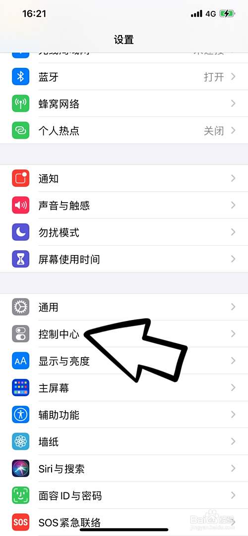 打开手机设置,找到控制中心。