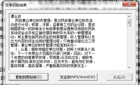 另外我们也可以在工具中选择文字识别这个按钮进行使用的。选择以后,用鼠标选择全部的内容。然后点击选择文字识别,然后就可以全部发送到word上就好了