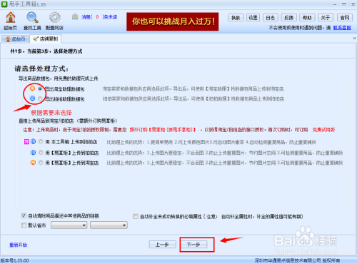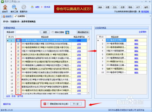 选择待复制商品,选择要复制的宝贝,然后点击“下一步”如下图所示