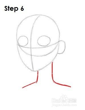 第6步:在头顶下,为Starfire的脖子画两条曲线。线条应向外弯曲一点以形成肩部的顶部。