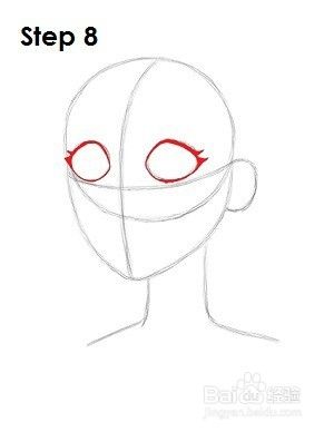 第8步:使用初始圆圈作为引导来绘制Starfire眼睛的形状。按照圆圈的基本路径,在变暗的时候使线条变粗。在眼睛的顶部画几个厚尖尖的形状来代表Starfire的睫毛。