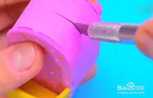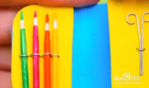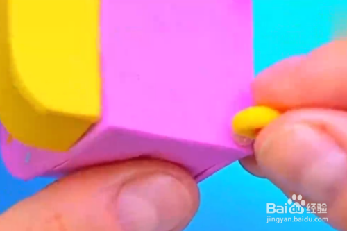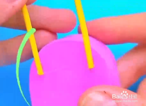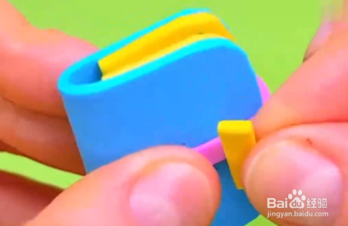 把一层白色海绵纸用两层其他颜色的海绵纸夹住