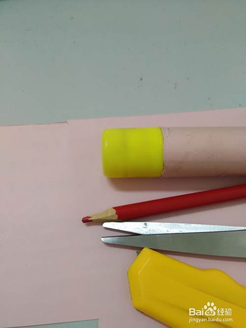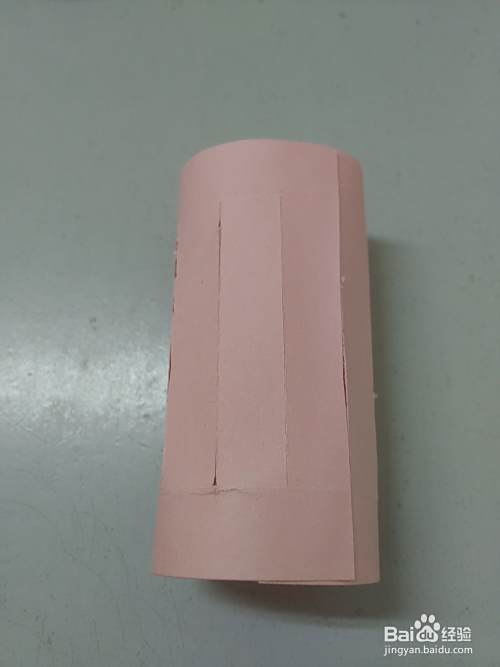 用胶棒将长方形左右两边粘在一起,粘成一个圆圆的筒。