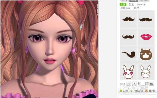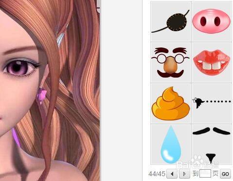 点击黑色小三角,翻页到44页,然后点击美女兔牙选项;