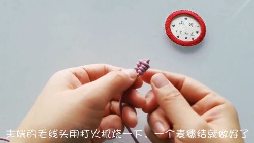 5末端的毛线头用打火机烧一下,制作好一个麦穗。