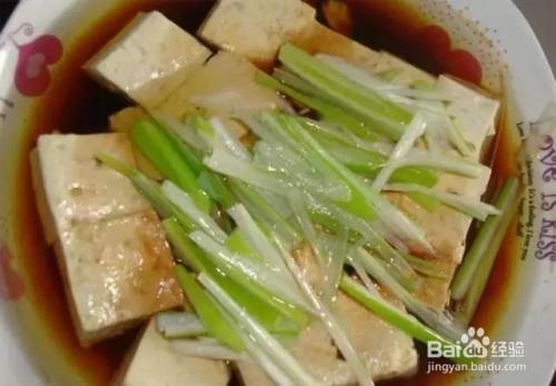 6、豆腐蒸好取出直接浇入鲜味酱油香油撒上葱花即可