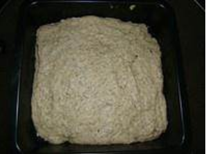 豆渣稍放凉,将所有材料混合在一起,搅拌均匀,放入涂了一层薄油的方形不粘烤盘中。