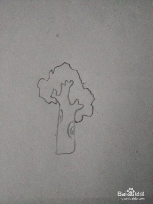 再用曲线勾出大树的树冠,树冠要尽量向着要画屋子的一边倾斜。