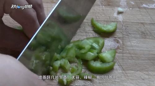 3准备好生姜、大蒜、辣椒,切碎备用。