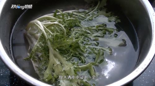 1苦菊去掉外面的老叶子,放入水中浸泡一会儿。