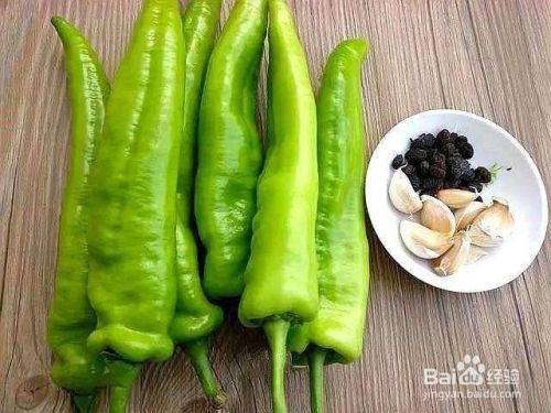 将青椒洗净,从中间劈开,去除里面的果实,在用小刀横切成一片一片