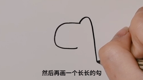 首先画一个C,再画一个长长的勾。