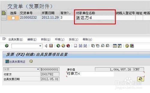 可以看到结果,送达方出现在发货单抬头中,付款方出现在发票抬头中