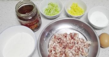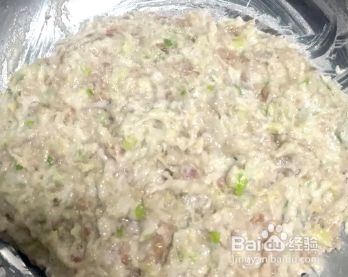肉馅中加入葱姜末两茶勺盐,二味水,鸡蛋清。