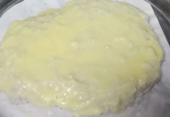 鸡蛋蛋黄加入面粉,再加入二味水搅拌成糊状,这个要尽量稠一些