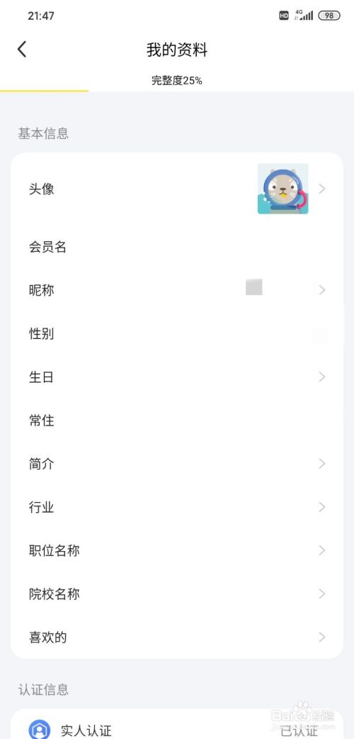 进入人资料设置后,可以查看到相关设置,点击项可以进行修改。