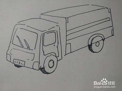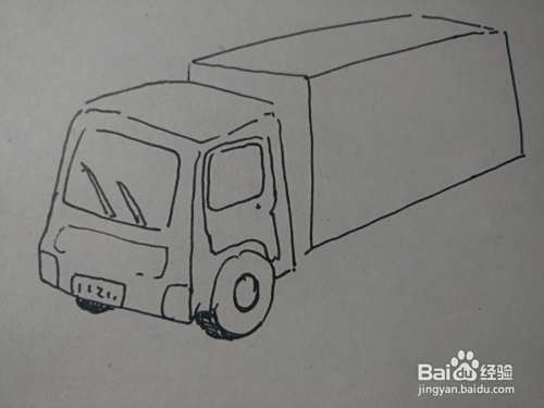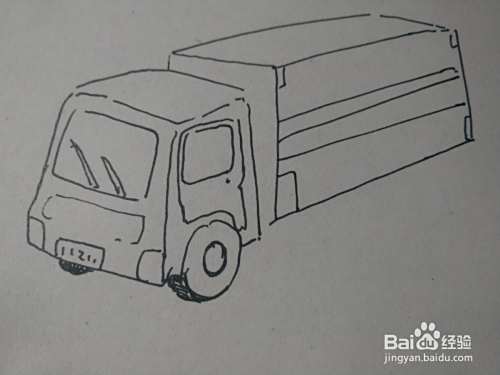 第四步画出大货车的车身,注意车身的透视。