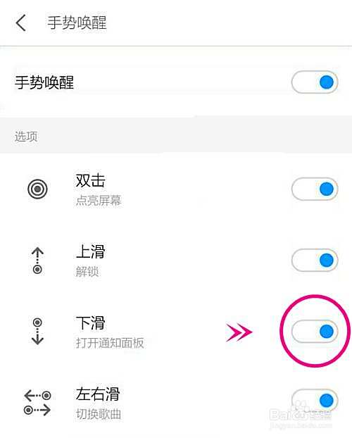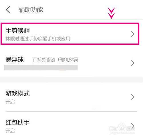 在【辅助功能】主界面——点开【手势唤醒】功能