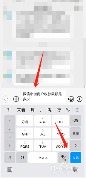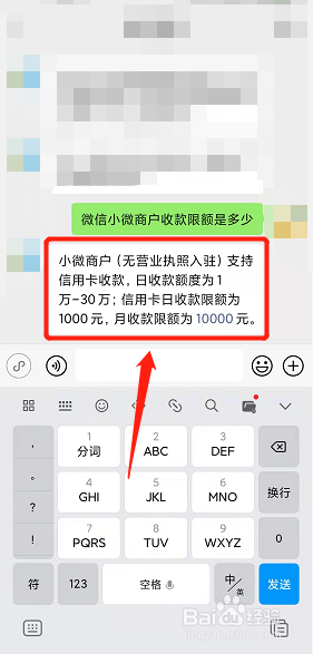 输入【微信小微商户收款限额是多少】,点击【发送】