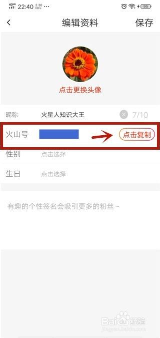 然后在里面同样可以看到火山号,并且点击后面的【点击复制】,可以复制火山号到其它位置。