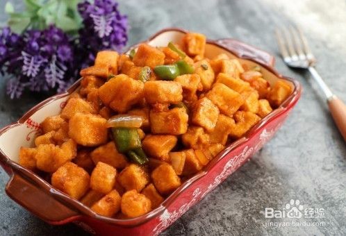 将炸好的豆腐丁放入,翻炒均匀即可出锅~
