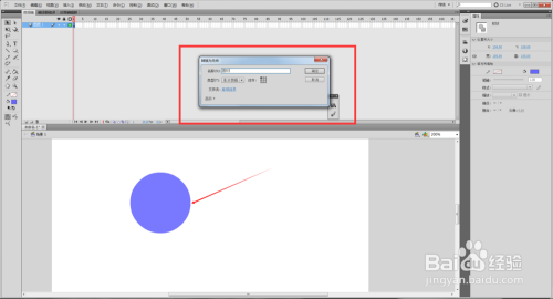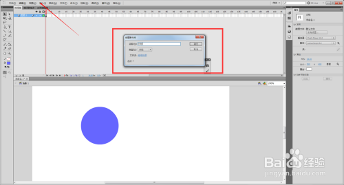 单击我们创建的圆形,右键将其“转化为元件”将元件的类型修改为“影片剪辑“,并重命名,单击确定,如图。