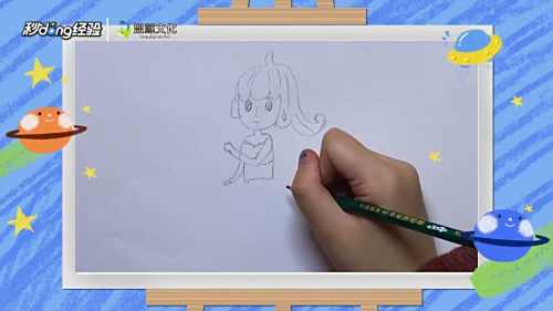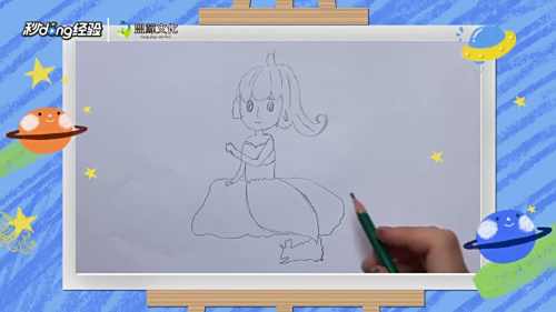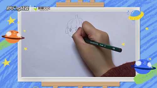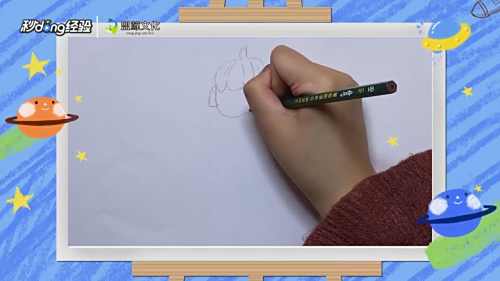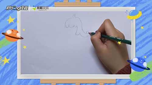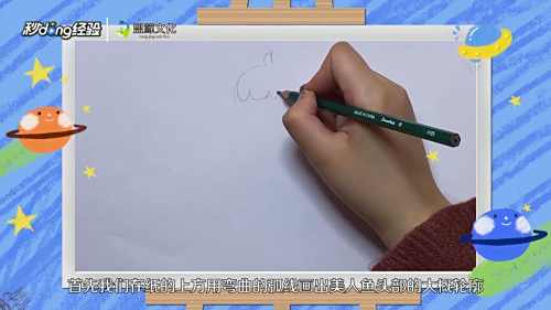 1在纸上方用弯曲的弧线画出美人鱼头部的轮廓。