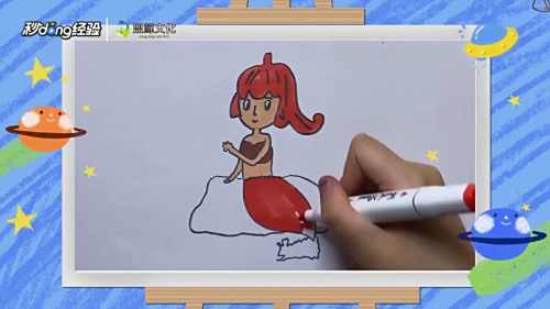 9用马克笔给美人鱼上色即可。