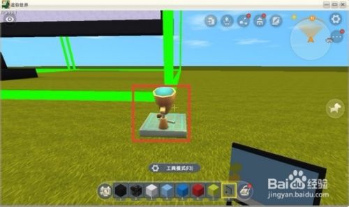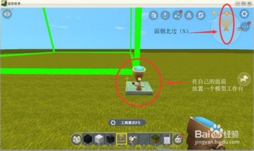 2、先放置两个模型工作台,因为我们做的微缩电脑模型占用的区域是两个格子。(请注意,这两个模型工作台不一定要按照这个方式去摆放,只要两个微缩区域是相邻而且对齐就可以了,下面这个摆放方式是为了在摆放制作好的模型的时候让模型的正面对着我们的正面,比较方便)