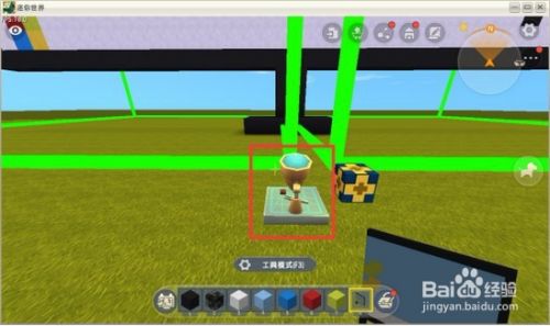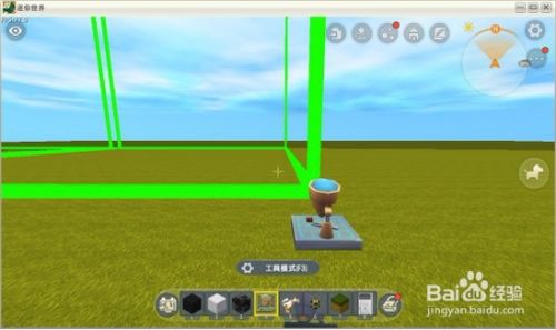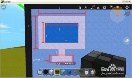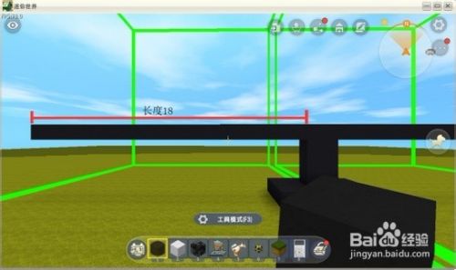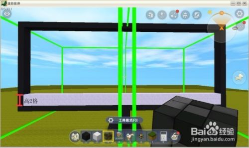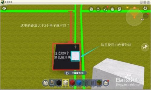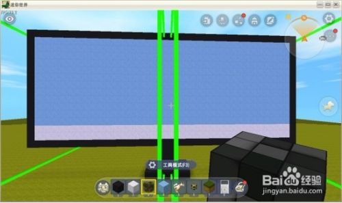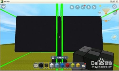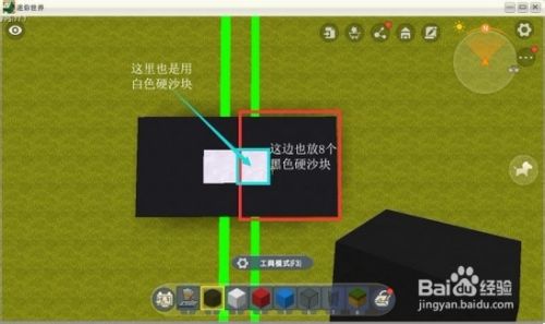 3、飞到两个微缩区域的中间,在左边和右边分别放置9个方块。至于方块离上下两个绿色边的距离只要最小距离大于3就可以了。