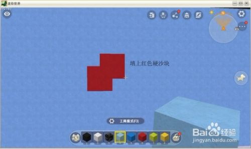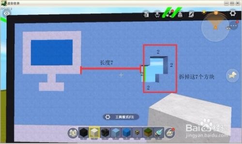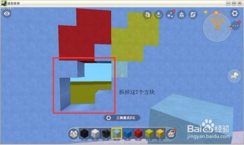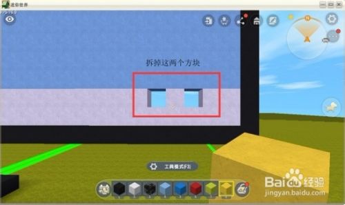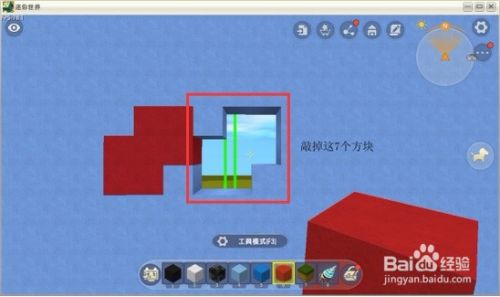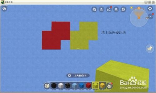 11、在这个红色部分的右边,用同样的方式拆掉7个方块,填上绿色硬沙块。