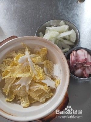 白菜撕开,叶子多一些,东瓜切片,五花肉切片。