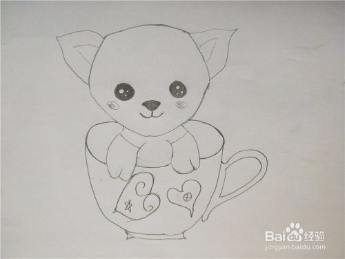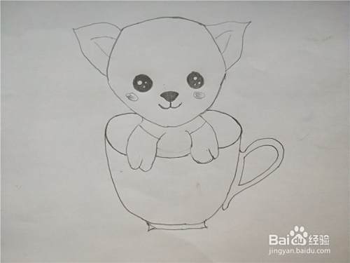 最后对茶杯进行美化,画出一些花纹和图案即可,这样我们就将茶杯犬画好啦,如图所示。