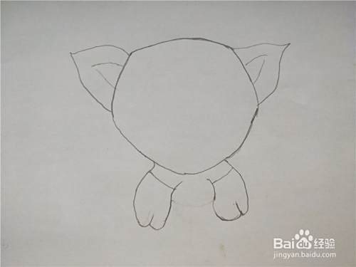 之后将茶杯犬的一对耳朵画好,同样可以画成如图的尖尖的耳朵,也可以化成平滑的半圆耳朵,因为茶杯犬的长相会不同,如图所示。