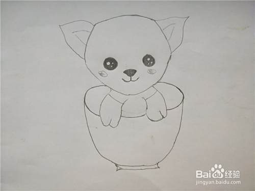 之后我们将茶杯犬所在茶杯的边缘画出来,要能体现出茶杯犬在茶杯中的感觉,如图所示。