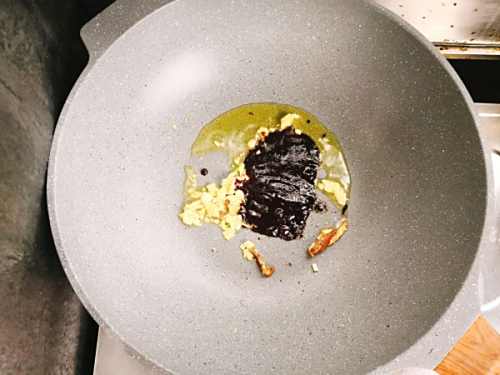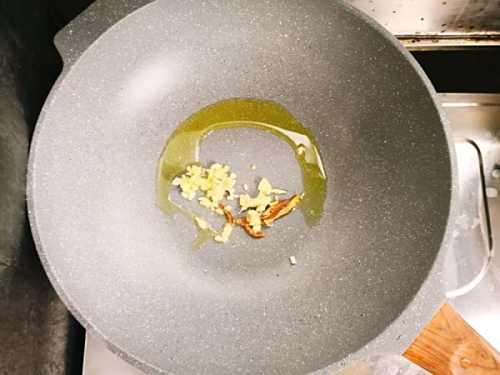 4蒜,姜切末,锅中倒少许油烧热,放入蒜末,姜末,陈皮爆出香味。