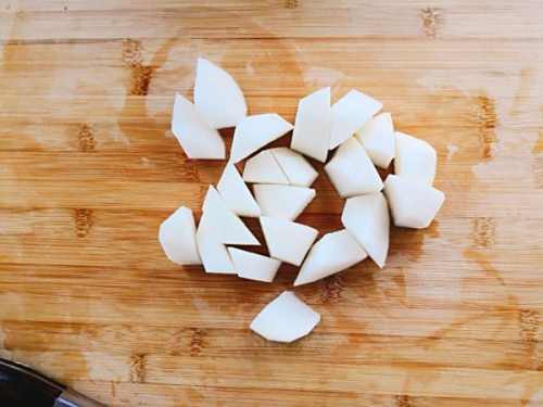 2锅中倒水烧开,把牛腩洗净切块,不用切太细。