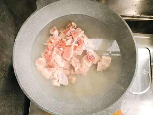 35分钟后把萝卜也放进去焯水。捞起后再用清水冲洗下。
