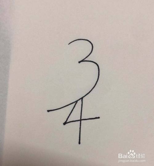 在数字“3”正下方画上一个偏小一点的数字“4”;