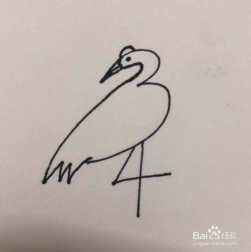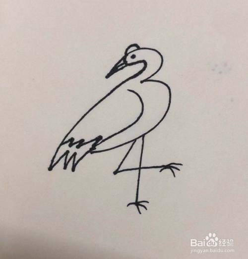 接着在丹顶鹤头部画上嘴巴、眼睛和冠;
