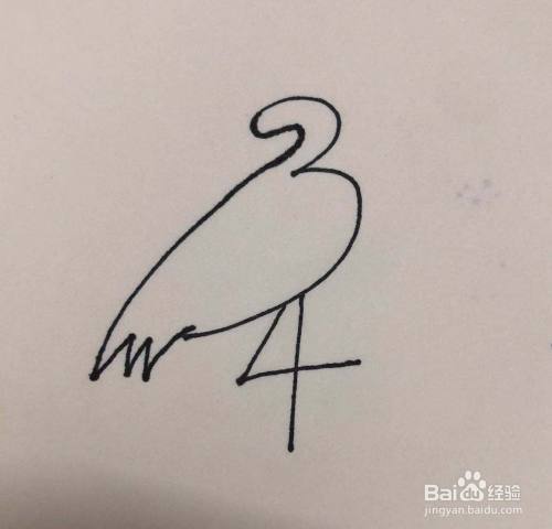 然后在数字“3”上添加几笔,把丹顶鹤头部和身体的轮廓勾勒出来;