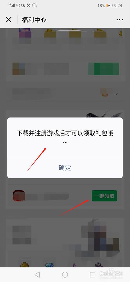 第五步,点击‘一键领取’按钮,如果下载了游戏即可领取成功,如果未安装游戏则提示前往下载。